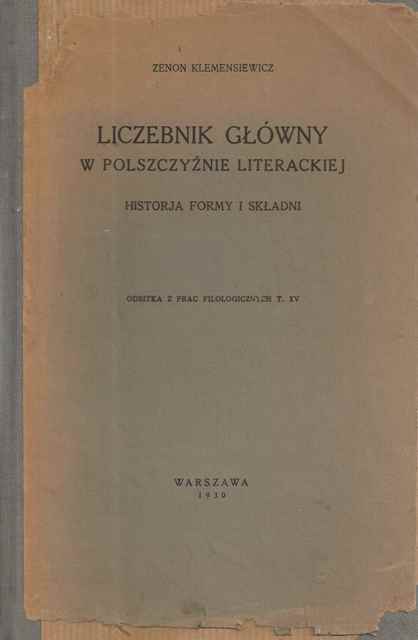 Liczebnik główny w polszczyźnie literackiej : historja formy i składni / Zenon Klemensiewicz. - Warszawa : [wydawca nieznany], 1930 (Warszawa : odbito w Drukarni Zakładów Wydawniczych M. Arct, Sp Akc). - [2], 130, [1] strona ; 25 cm.