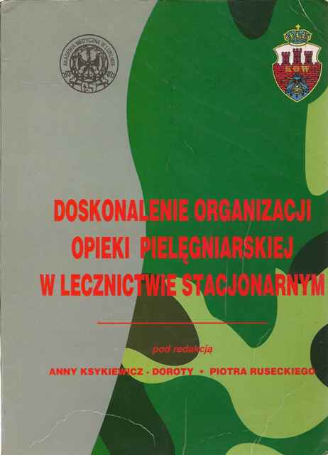 Doskonalenie organizacji opieki pielęgniarskiej w lecznictwie stacjonarnym / pod redakcją Anny Ksykiewicz-Doroty, Piotra Ruseckiego. - Wydanie 2 poprawione. - Kraków : Abrys ; Lublin : Akademia Medyczna, 1996. - 218, [1] strona : ilustracje, mapa, wykresy ; 21 cm.