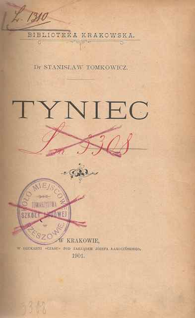 Tyniec / Stanisław Tomkowicz. - Kraków : Towarzystwo Miłośników Historii i Zabytków Krakowa, 1901. - 83 strony, [2] karty tablic : ilustracje, fotografie, plany ; 23 cm.