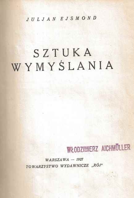 Sztuka wymyślania / Juljan Ejsmond. - Warszawa : "Rój", 1927 (Warszawa : "Drukarnia Polska"). - 125, [2] strony ; 18 cm.