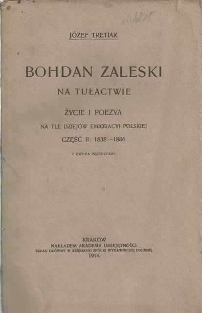 Stanowi dalszy ciąg monografii pt.: Bohdan Zaleski do upadku powstania listopadowego / Józef Tretiak.