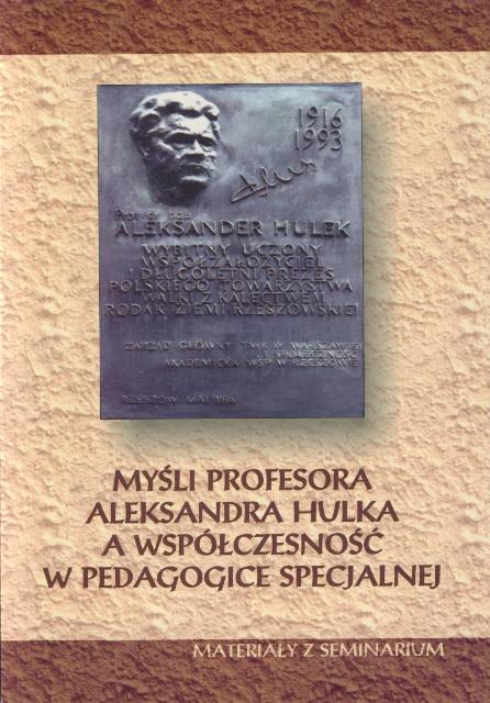 Życie Profesora / Józef Sowa ; Listy okolicznościowe ; Otwarcie seminarium ; Odsłonięcie tablicy pamiątkowej ; Odznaczenia złotą odznaką TWK: Zarys działalności Oddziału Wojewódzkiego TWK w Rzeszowie / Henryk Waszkowski, Wystąpienie w imieniu odznaczonych Złotą Odznaką TWK / Kazimierz Jacek Zabłocki ; Przywołanie: Regina Schönborn - liryk pamięci Profesora Aleksandra Hulka ; Referaty Naukowe: Idea integracji dzieci niepełnosprawnych w koncepcji prof. Aleksandra Hulka / Janina Wyczesany, Inspiracje i innowacje prof. Aleksandra Hulka / Bożena Grochmal-Bach, Trwałe wartości koncepcji rehabilitacji osób niepełnosprawnych w ujęciu prof. Aleksandra Hulka / Marianna Marek-Ruka, Profesor Aleksander Hulek jako psycholog / Kazimierz Jacek Zabłocki, Rola Profesora Aleksandra Hulka w tworzeniu systemu służb socjalno-rehabilitacyjnych / Jerzy Mikulski, Hulkowa Szkoła Rehabilitacji / Henryk Waszkowski, Refleksje doktoranta / Tadeusz Kott, Moje spotkanie z Profesorem Aleksandrem Hulkiem / Adam Krzanowski, Z wizytą u nas / Zofia Pelc, Wspólny obowiązek / Janusz Koniusz, Integracja społeczna dzieci niepełnosprawnych w koncepcji Profesora Aleksandra Hulka / Marzena Rorat, Ale adresata już nie było / Jerzy Klatka ; Dyskusja: Wspomnienie o Wuju Profesorze Aleksandrze Hulku / Stanisław Maś, Profesor jako wychowawca i nauczyciel / Grażyna Dryżałowska, Profesor jako wieloletni prezes TWK / Andrzej Brylski, Profesor jako działacz społeczny / Józef Patkiewicz, Związki Profesora z Rzeszowszczyzną / Aleksander Płaksiak; Podsumowanie seminarium ; Lista uczstników ; Komitet Organizacyjny Seminarium.