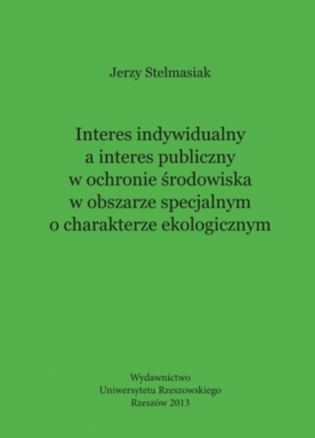 Rozdział I. Charakterystyka ogólna realizacji interesu indywidualnego ujmowanego w perspektywie interesu publicznego na terenie obszaru specjalnego o charakterze ekologicznym. Rozdział II. Ewolucja kształtowania się relacji interes indywidualny a interes publiczny w kontekście funkcjonowania obszaru specjalnego o charakterze ekologicznym. Rozdział III. Specyfika interesu indywidualnego realizowanego na terenie obszaru specjalnego o charakterze ekologicznym. Rozdział IV. Realizacja interesu publicznego w zakresie ochrony środowiska w aktach prawa miejscowego o utworzeniu obszaru specjalnego o charakterze ekologicznym. Rozdział V. Tryb rozstrzygania konfliktu interesu indywidualnego z interesem publicznym w obszarze specjalnym o charakterze ekologicznym.