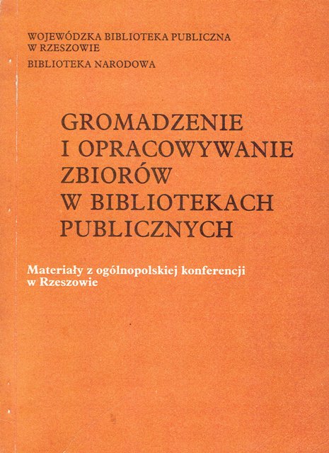 1. Witold Adamiec - Sytuacja bibliotek publicznych w dziedzinie gromadzenia zbriorów ; 2. Józef Zając - Polityka wydawnicza a potrzeby bibliotek - plany wydawnicze ; 3. Maria Beata Klamut - Systemy gromadzenia zbiorów w bibliotekach publicznych w świetle publikacji zamieszczonych w "Biblotekarzu" w latach 1945-1983 ; 4. Lucyna Żuk - Potrzeby bibliotek w zakresie gromadzenia i opracowywania zbiorów na podstawie dyskusji i wniosków z międzywojewódzkich seminariów ; 5. Zdzisław Daraż - Założenia i efekty wojewódzkiego systemu gromadzenia i opracowywania zbiorów bibliotecznych ; 6. Irena Kościółek - Udział PP "Dom Książki" w Rzeszowie w wojewódzkim systemie gromadzenia zbiorów ; 7. Lucjan Biliński - Próba oceny systemów gromadzenia zbiorów w bibliotekach publicznych.