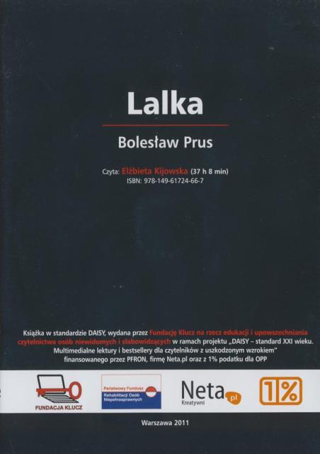 Lalka [Dokument dźwiękowy] / Bolesław Prus. - Warszawa : Fundacja Klucz, 2011. - 2 płyty CD (37 godz. 8 min) : digital, stereo. ; 12 cm.