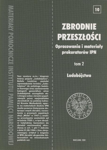 Ryszard Szawłowski - Rafał Lemkin (1900-1959) - polski prawnik twórcą pojęcia "ludobójstwo" ; Ryszard Szawłowski - Trzy tematy z dziedziny "genocydologii" ; Zając Piotr - Prześladowania ludności narodowości polskiej na terenie Wołynia w latach 1939-1945 - ocena karnoprawna zdarzeń w oparciu o ustalenia śledztwa OKŚZpNP w Lublinie ; Przemysław Miszko, Krzysztof Matkowski - Zbrodnie ludobójstwa popełnione przez nacjonalistów ukraińskich w Małopolsce Wschodniej w latach 1939-1945 na osobach narodowości polskiej - w świetle śledztw OKŚZpNP we Wrocławiu ; Przemysław Miszko, Krzysztof Matkowski - Problematyka właściwości miejscowej postępowań karnych w sprawach zbrodni ludobójstwa popełnionych przez nacjonalistów ukraińskich poza obecnymi granicami Rzeczypospolitej Polskiej na obywatelach polskich w okresie od 1939 do 1945 roku ; Marek Sowa - Problematyka odpowiedzialności karnej sprawców zbrodni ludobójstwa i zbrodni przeciwko ludzkości w kontekście śledztw prowadzonych w OKŚZpNP w Rzeszowie oraz orzecznictwa sądów wojskowych i powszechnych w katach czterdziestych i pięćdziesiątych XX wieku ; Antoni Kura - Akcja "Wisła" w świetle niektórych dokumentów ; Witold Wasilewski - Katyń 1940 - sowieckie ludobójstwo na Polakach ; Małgorzata Kuźniar-Plota - Kwalifikacja prawna zbrodni katyńskiej - wybrane zagadnienia. Informacja o stanie śledztwa w sprawie zbrodni katyńskiej ; Grzegorz Malisiewicz - Prawne aspekty sowieckiej akcji zbrojnej przeciwko II Rzeczypospolitej dokonanej 17 września 1939 r. ; Lucyna Rączy - Deportacje obywateli polskich z terenu byłego województwa lwowskiego w świetle śledztw prowadzonych w OKŚZpNP w Rzeszowie ; Lucjan Nowakowski - Zasady odpowiedzialności za zbrodnie wojenne i zbrodnie przeciwko ludzkości ; Radosław Ignatiew - Komentarz do art. 1 pkt 1 dekretu z dnia 31.08.1944 r. o wymiarze kary dla faszystowsko-hitlerowskich zbrodniarzy winnych zabójstw i znęcania się nad ludnością cywilną i jeńcami oraz dla zdrajców Narodu Polskiego ; Andrzej Jankowski - Wieś polska na ziemiach okupowanych przez Niemcy w czasie II wojny światowej w postepowaniach karnych organów wymiaru sprawiedliwości RFN ; Orzecznictwo sądów polskich (oprac. Radosław ignatiew).
