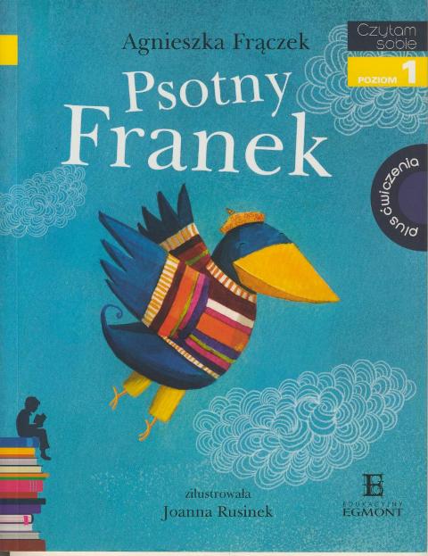 Fruwający zimą nad miastem Franek to nie żadna papuga, a kruk (a może gawron), który postanowił zażartować sobie z przechodniów zakładając pstrokate ubranko, a na łepek gustowny berecik… Zabawną historyjkę ubarwiają ciepłe ilustracje Joanny Rusinek. Czytam sobie to trzypoziomowy program wspierania nauki czytania dla dzieci w wieku 5-7 lat. [www.egmont.pl, 2014]