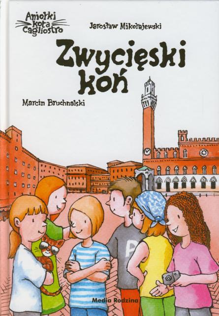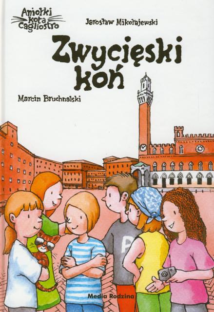 Helenka, Marta, Mary, Olga, Patricia, Rita... Sześć dziewcząt z sześciu różnych krajów, sześć charakterów. To aniołki kota Cagliostro, znane już z książek Uśmiech Bambola i Szklane oczy. A przed nimi kolejna zagadka detektywistyczna do rozwiązania, kolejna przygoda. Tym razem zostają wezwane przez swojego szafa - kota Cagliostro - do Sieny. Najbardziej cieszy się Rita, która mieszka w Toskanii, choć okazuje się, że i ona musi skorzystać z tajemniczego kociego oka, by dostać się na miejsce. Zadanie brzmi niezwykle tajemniczo:" Contradzie Jeżozwierza ktoś ukradł konia". Tylko Rita wie, że to poważna sprawa, która ma związek z Palio, najważniejszym wydarzeniem każdego roku w Sienie. Czy wpadną na trop tego konia? Czy przy okazji poznają malowniczą Sienę i inne toskańskie miasta? A może nawet trafią do średniowiecznego zamku? Co - a może kto - się za tym wszystkim kryje? [Media Rodzina, 2015]