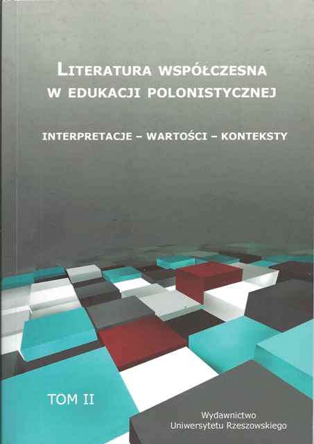 I. Paweł Sporek, W poszukiwaniu sensu życia. Sunset LimitedCormaca McCarthy'ego jako dramat o ludzkim byciu w świecie ; Urszula Kopeć, Językowo-kulturowy obraz miłości małżeńskiej i rodzinnej. Karol Wojtyła Przed sklepem jubilera ; Stanisław Dłuski, Herbert w szkole. Etyka i aksjologia ; Jolanta Mazur-Fedak, Problematyka aksjologiczna XX wieku na podstawie wierszy Czesława Miłosza. Propozycja modułu do kanonu w szkole średniej ; II. Agnieszka Kusz, Wartościowanie kobiety w metaforach i porównaniach typu Kobieta to zwierzę na przykładzie twórczości Agnieszki Osieckiej ; Elżbieta Mazur, O kobiecych trenach w szkole średniej (na przykładzie Białego rękopisu Anny Kamieńskiej i Requiem z ptakami Adriany Szymańskiej) ; Barnarda Majka, Poetycka podróż w krainę snu Ludmiły Marjańskiej ; Anna Hajduk, Ofiarowanie Izaaka - reinterpretacje biblijnej opowieści o Abrahamie - polskiej poezji współczesnej ; III. Małgorzata Krzysztofik, Poezja śpiewana Jacka Kaczmarskiego w edukacji ponadgimnazjalnej. Wybór piosenek, metody, efekty kształcenia ; Ewelina Radion, Audiosfera Karmazynowego poematu Jana Lechonia ; Paulina Osak, Świadomość językowa a interpretacja. Poezja neolingwistyczna w szkole - ciekawostka czy materiał interpretacyjny? ; IV. Grażyna Różańska, Powieść Doroty Masłowskiej przyczynkiem do rozmowy polonisty z mło¬dzieżą o młodzieży ; Piotr Kołodziej, „Wyspa otoczona łódkami strachu". Współczesna szkoła wobec współcze¬snych problemów ; Dominik Borowski, W poszukiwaniu literackich odniesień do lektur szkolnych... O próbie zestawiania tekstów kanonicznych z najnowszą literaturą dla młodzieży - projekt dydaktyczny.