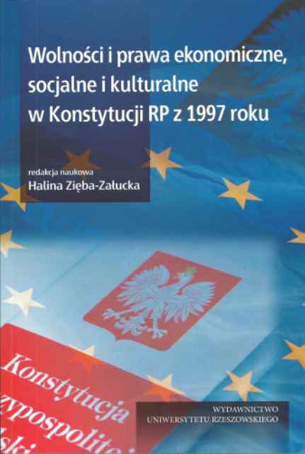 R. I. Wolności i prawa ekonomiczne, socjalne i kulturalne w Konstytucji RP - rozważania ogólne (Halina Zięba-Załucka) ; R. II. Prawo do własności, innych praw majątkowych oraz dziedziczenia ( Beata Stępień-Załucka) ; R. III. Wolność pracy (Grzegorz Pastuszko) ; R. IV. Prawo do bezpiecznych i higienicznych warunków pracy (Aldona Ziobro) ; R. V. Prawo do zabezpieczenia społecznego (Halina Zięba-Załucka) ; R. VI. Prawo do ochrony zdrowia (Małgorzata Grzesik-Kulesza) ; R. VII. Pomoc i ochrona osób niepełnosprawnych (Małgorzata Grzesik-Kulesza) ; R. VIII. Prawo do nauki (Beata Stępień-Załucka) ; R. IX. Prawo do pomocy społecznej i ochrony rodzin (Halina Zięba-Załucka, Sylwia Stecko) ; R. X. Ochrona praw dziecka (Joanna Uliasz) ; R. XI. Wolność twórczości artystycznej, badań naukowych, nauczania oraz korzystania z dóbr kultury (Grzegorz Pastuszko) ; R. XII. Prawa jednostki w zakresie środowiska naturalnego (Joanna Uliasz) ; R. XIII. Prawo do mieszkania (Dominika Wapińska) ; R. R. XIV. Ochrona konsumentów, użytkowników i najemców (Beata Stępień-Załucka).