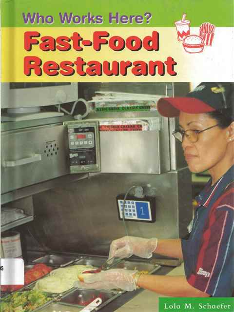 Fast-food restaurant / by Lola M. Schaefer. - Chicago : Heinemann Library, copyright 2001. - 32 strony : fotografie kolorowe ; 27 cm.