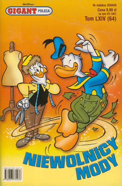 Kaczogród opanowała mania przebierania - w szczęśliwe spodnie, dzięki którym wnet znikają wszelkie smutki! Problem jest jeden : Donald jako specjalista od markietingu w fabryce tego cudeńka. Co wy na to? Macie rację, kłopoty już się czają! JESZCZE DZIKSZY ZACHÓD To się nazywa wakacje w siodle! Miki i Goofy w towarzystwie hodowców bydła przemierzają prerię. To zadanie dla prawdziwych kowbojów i absolutnie nie ma miejsca na pomyłki. Chociaż... LOKAJ SIĘ NIE KAJA Ona, on i... ten trzeci, czyli sir Vlad Snoberfeller, na widok którego serce Daisy bije dużo szybciej. Czy szarmancki wielbiciel okaże się lepszy od starego poczciwego Donalda? A może nie wszystko złoto, co się świeci? [Wydawnictwo Egmont Polska, 2006]