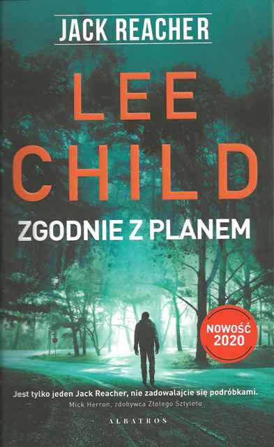 Światem rządzi przypadek, ale raz na jakiś czas wszystko idzie zgodnie z planem. Niestety, nie tym razem… Reacher jak zwykle podróżuje autobusem – przemierza Stany Zjednoczone bez konkretnego celu, usiłując nie wpakować się w kłopoty. Przerywa jednak podróż, by pomóc starszemu mężczyźnie, który pozostawiony samemu sobie bez wątpienia padłby ofiarą przestępstwa. Wiecie, co mówią o dobrych uczynkach… Teraz Reacher musi doprowadzić sprawę nowego znajomego do końca i wszystko naprawić. A zdarzyło się całkiem dużo. Para starszych ludzi popełniła kilka poważnych błędów – w ich wyniku jest dłużna spore pieniądze grupie niebezpiecznych ludzi. Reacher szybko orientuje się, że właśnie stał się wrogiem numer jeden dwóch walczących o terytorium gangów – ukraińskiego i albańskiego. Będzie musiał stawić czoło bandzie lichwiarzy, złodziei i zabójców. Pomoże mu w tym znudzona kelnerka, która wie nieco więcej, niż chce ujawnić. To będzie długa droga, zwłaszcza że wszystko sprzysięgło się przeciwko niemu... Ale Reacher wierzy, że raz na jakiś czas sprawiedliwości staje się zadość. [https://www.wydawnictwoalbatros.com/ksiazki/zgodnie-z-planem/, dostęp 19.02.2020]
