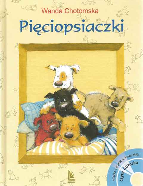 Pięciopsiaczki / Wanda Chotomska ; ilustrowała Aneta Krella-Moch. - Wydanie 20. - Łódź : Wydawnictwo Literatura, 2020. - 70, [2] strony : ilustracje (w tym kolorowe) ; 23 cm + 1 płyta audio (CD).