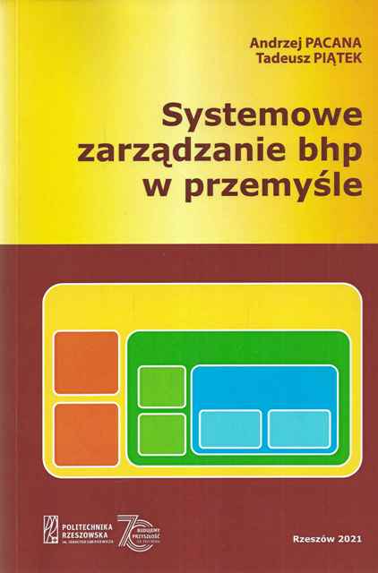 Systemowe zarządzanie bhp w przemyśle / Andrzej Pacana, Tadeusz Piątek. - Rzeszów : Oficyna Wydawnicza Politechniki Rzeszowskiej, copyright 2021. - 168, [3] strony : ilustracje, wykresy ; 24 cm.