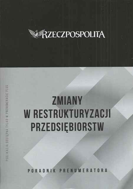 Zmiany w restrukturyzacji przedsiębiorstw / [autorzy poradnika Oskar Sitek i inni ; redaktor prowadząca Teresa Siudem]. - Stan prawny na październik 2021 roku (z uwzględnieniem zmian wchodzących w życie z dniem 1 grudnia 2021 r.). - Warszawa : Gremi Media, [2021]. - 98 stron ; 24 cm.