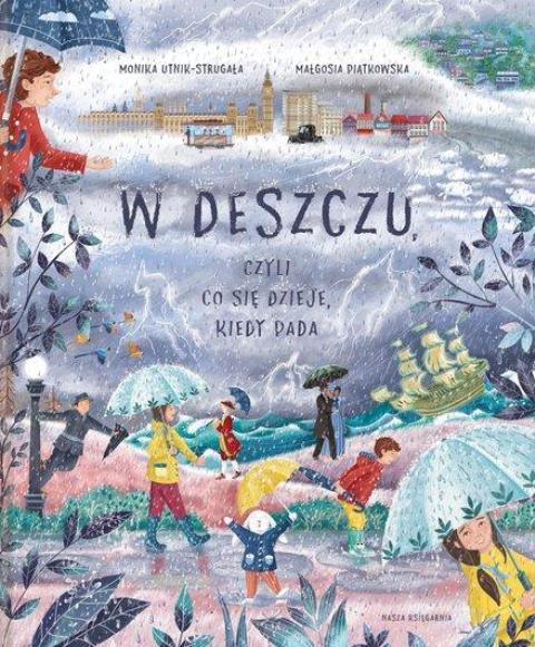 W deszczu, czyli Co się dzieje, kiedy pada / [tekst] Monika Utnik ; [ilustracje] Małgosia Piątkowska. - Wydanie pierwsze. - Warszawa : Nasza Księgarnia, 2022. - [64] strony : ilustracje kolorowe ; 35 cm.