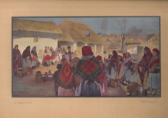 Przedstawia mieszkańców wsi, którzy zebrali się w centaralnym miejscu w Wielką Sobotę, aby zgodnie z tradycją poświęcić pokarmy na wielkanocny stół.