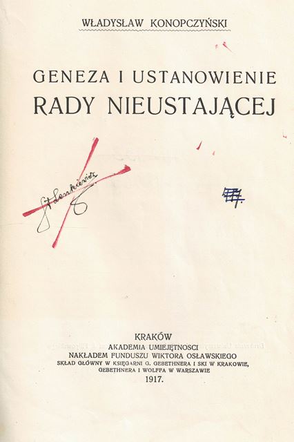 Geneza i ustanowienie Rady Nieustającej / Władysław Konopczyński. - Kraków : Akademia Umiejętności, 1917 ([Kraków] : Drukarnia Uniwersytetu Jagiellońskiego). - X, 432 strony ; 22 cm.