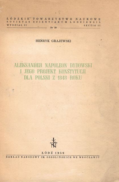 Działalność i twórczość Aleksandra Napoleona Dybowskiego na tle epoki ; Projekt tymczasowej konstytucji dla Polski z 1848.