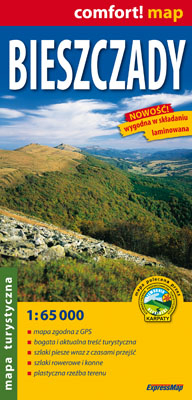 1. Mapa turystyczna ; 2. Mapa zgodna z GPS ; 3. Bogata i aktualna treść turystyczna ; 4. Szlaki piesze z czasami przejsć ; 5. Szlaki rowerowe i konne ; 6. Plastyczna rzeźba terenu.
