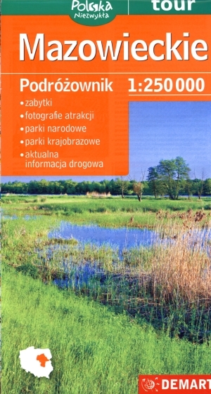 Mazowieckie : podróżownik 1:250 000 / oprac. wyd. Anna Nadstawna ; Demart SA. - Warszawa : Demart SA, cop. 2015. - 1 mapa : dwustronny, kolor. ; ark. pap. 68x98 cm, złoż. 23x13 cm.