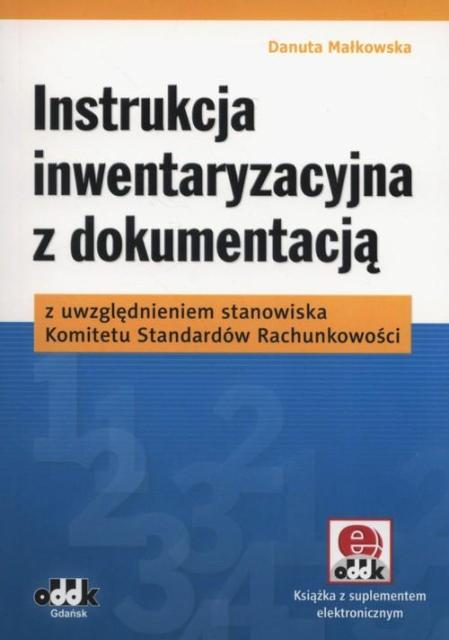 Instrukcja inwentaryzacyjna z dokumentacją : z uwzględnieniem stanowiska Komitetu Standardów Rachunkowości / Danuta Małkowska. - Wydanie 7. uaktualnione, stan prawny 20 lipca 2016 r. - Gdańsk : ODDK, 2017. - 102 strony : ilustracje ; 21 cm.