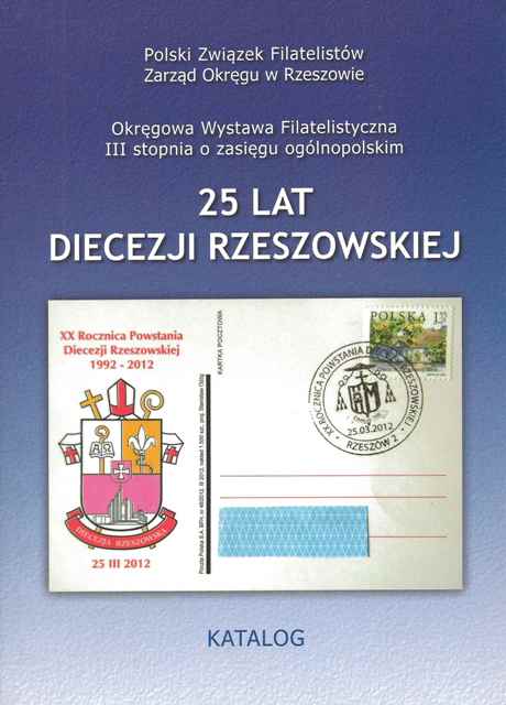 25 lat Diecezji Rzeszowskiej ; Diecezja Rzeszowska w filatelistyce: 25 lat Diecezji Rzeszowskiej, Burzliwa historia, Wielonarodowość, wielokulturowość, Dawne i nowe obiekty sakralne, Pielgrzymowanie, Szkolnictwo i jego efekty, Inne osobistości związane z terenami obecnej Diecezji Rzeszowskiej ; Regulamin Okręgowej Wystawy Filatelistycznej "25 lat Diecezji Rzeszowskiej" ; Spis eksponatów.
