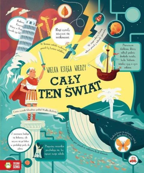 „Cały ten świat” to istna baza informacji o otaczającej nas przyrodzie, zwierzętach, człowieku, środkach transportu, muzyce i kosmosie. Czy wiesz, jak długo Jerzyki alpejskie potrafią latać bez przerwy? Jak długo rośnie mózg człowieka? Który zespół sprzedał najwięcej płyt na świecie? W tej księdze znajdziesz mnóstwo wspaniałych faktów i niezwykłych informacji na prawie każdy temat. [www.azymut.pl, 2018]