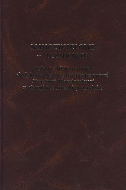 Cz. I. Biografia i wykaz dorobku naukowego oraz dydaktycznego ks. prof. zw. dra hab. Józefa Mandziuka. Cz. II. Wspomnienia. Cz. III. Artykuły: Biblioteki na Ziemi Przemyskiej do zakończenia II wojny światowej / Bernardyna Banaś ; Wpływ wypalenia zawodowego na samoświadomość, akceptację siebie oraz poziom zdolności twórczych pracowników służb mundurowych / Waldemar Basak ; Zarys dziejów szkolnictwa w Głogowie Małopolskim / Barbara Bąk ; Zarys dziejów parafii pw. Trójcy Świętej w Przewornie-Siemisławicach / Tomasz Błaszczyk ; Jezuici w (Archi)diecezji Wrocławskiej za rządów kardynała Adolfa Bertrama (1914-1945) / Paweł Chodór ; Św. Rafał Kalinowski (1835-1907), karmelita bosy, jako kierownik duchowy / Jan Dąbrowski ; Udział minorytów w chrystianizacji Litwy / Marek Adam Dettlaff ; Sejmowe akty prawne w ocenie kardynała Aleksandra Kakowskiego, arcybiskupa-metropolity warszawskiego / Michał Gajownik ; Działalność społeczna ks. dr. Adama Kopycińskiego - jako proboszcza parafii Gawłuszowice w latach 1893-1914 / Włodzimierz Gąsiewski ; Józefińskie inspiracje reform diecezjalnych seminariów duchownych w Królestwie Polskim w latach 1815-1836 / Waldemar Gliński ; Zakony żeńskie w Jaśle w okresie niewoli narodowej (1772-1918) / Mariusz Godek ; Wojciech Kilar - Patron Zespołu Szkół Muzycznych nr 2 w Rzeszowie / Maria Jędras-Romankiewicz ; Prawo teutońsko-magdeburskie / Julian Kapłon ; Polonia w Niemczech do 1945 roku / Andrzej Kreft ; Parafia farna w Bieczu w latach 2001-2011 / Władysław Kret ; Geneza i rozwój Braci Szkolnych w Polsce / Andrzej Kuśmierski ; Uwarunkowania prowadzące ks. Adolfa Bertrama (1859-1945) do święceń biskupich w 1906 roku / Zdzisław Lec ; Organizacja Kościoła greckokatolickiego na Pomorzu Zachodnim / Irena Lewicka ; Początki struktur kościelnych na terenie Administracji Apostolskiej Dolnego Śląska (1945-1951) / Czesława Maćkała ; Działalność arcybiskupa Henryka Förstera ordynariusza wrocławskiego w dobie kulturkampfu / Andrzej Majewski ; Dzieje parafii rzymskokatolickiej pw. św. Michała Archanioła i Przemienienia Pańskiego w Jałówce (1747-1939) / Józef Makarczyk ; Rys historyczny kształcenia w zawodzie położnej do początku XX wieku / Alicja Malinowska ; Kościół garnizonowy w Twierdzy Modlin / Zbigniew Mikołajczyk ; Chrześcijańska duchowość, obraz świata, stosunek do "innych" oraz hierarchia zainteresowań poznawczych na podstawie wybranych relacji podróżniczych z XVII-XVIII wieku / Michał Bogdan Nowak ; Kaznodziejstwo dolnośląskich Braci Mniejszych Konwentualnych w latach 1945-1972 / Roman Pałaszewski ; Zasady aktualizacji kerygmatu w świetle wybranych publikacji homiletów amerykańskich / Zbigniew Pałka ; Ks. prałat Bolesław Kałuża (1935-2005) duszpasterz, wykładowca seminaryjny, ekumenista / Zdzisław Pienio ; Tomasz Merton - święty dla współczesnych? / Jacek Podkamienny ; Rys historyczny organizacji zawodowych pielęgniarek w Polsce / Joanna Przybytek-Mita ; Dzieje obrazu Matki Bożej Krechowieckiej jako przykład losów polskich wizerunków Maryjnych zza Buga / Barbara Skowron ; Ks. Leon Pastor jako działacz społeczny i założyciel Polskiego Centrum Ludowego / Krzysztof Szopa ; Problematyka pijaństwa epoki panowania Wettinów / Wojciech Tokarz ; Sanktuarium Matki Boskiej Czerwińskiej - Pani Mazowsza / Eugeniusz Grzegorz Wiązowski ; Duchowieństwo katolickie w strukturach Polskiego Państwa Podziemnego na Wileńszczyźnie w latach 1939-1944 / Cyprian Wilanowski ; Fundacja klasztoru karmelitów bosych w Przemyślu / Dorota Zielińska ; Stan wojenny z okien ulicy Worcella 1 / Piotr Zwoliński.