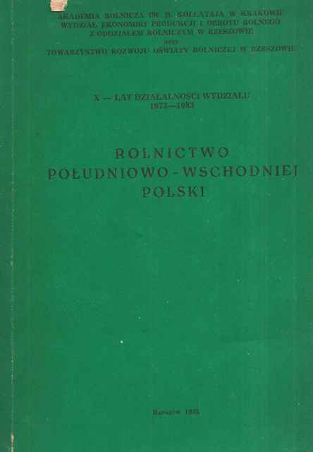Fizjograficzne aspekty produkcji roślinnej w południowo-wschodniej Polsce ; Opady atmosferyczne i pokrywa śnieżna w świetle potrzeb rolnictwa na obszarze południowo-wschodniej Polski ; Ranunculus z grupy Nemorosus z Bieszczadów ; Efektywność produkcyjna i ekonomiczna udoskonalonych technologii uprawy pszenicy ozimej w rejonie południowo-wschodnim (streszczenie) ; Uprawa zbóż pastewnych w rejonach górskich i podgórskich Beskidu Wschodniego i Niskiego ; Zależność między wybranymi cechami siewek a wysokością i plennością odmian jęczmienia jarego (streszczenie) ; Znaczenie ochrony roślin w podnoszeniu plonów południowo-wschodniej Polski ; Rozszerzenie uprawy kukurydzy w rejonie południowej Polski - badania dotychczasowe i ich dalszy rozwój ; Wpływ nawożenia azotowego na przebieg wegetacji, plon ziarna i niektóre cechy morfologiczne kukurydzy uprawianej na dwóch kompleksach glebowych ; Zawartość cukrów w okresie zimy w siewkach form Triticale o różnej mrozoodporności (doniesienie naukowe) ; Wpływ nawożenia azotowego na plon suchej masy kukurydzy i zawartość składników pokarmowych w suchej masie kolb przy uprawie na dwóch kompleksach glebowych ; Dobór odmian i produkcja sadzeniaków ziemniaka dla południowo-wschodniej Polski ; Badanie wpływu nawożenia azotowego na przebieg wegetacji i występowanie objawów chorobowych na ziemniakach (doniesienie naukowe) ; Wpływ nawożenia azotowego, podkiełkowywania i defoliacji na udział sadzeniaków w plonie ogólnym ziemniaków (doniesienie naukowe) ; Uprawa roślin strączkowych na nasiona i zieloną masę w Makroregionie Południowo-Wschodnim ; Wpływ nawożenia azotowego na plonowanie oraz zawartość białka ogólnego i tłuszczu w nasionach soi ; Wpływ gęstości siewu na cechy morfologiczne nowych rodów soi ; Wpływ terminu i gęstości siewu na zawartość białka ogólnego i tłuszczu w nasionach soi uprawianej na różnych glebach ; Wpływ nawożenia azotowego na kształtowanie cech morfologicznych nowych form soi ; Wstępne wyniki badania przebiegu wegetacji i plonowania soi w zależności od ilości wysiewu (doniesienie naukowe) ; Badania wpływu gęstości siewu na zawartość białka i tłuszczu w nasionach soi (doniesienie naukowe) ; Badanie wpływu zróżnicowanego nawożenia NPK na zawartość białka i tłuszczu w nasionach soi (doniesienie naukowe) ; Badanie wpływu herbicydów stosowanych w uprawie na zawartość białka i tłuszczu w nasionach soi (doniesienie naukowe) ; Wstępne wyniki badań reakcji odmiany Progres na zróżnicowane nawożenie NPK (doniesienie naukowe) ; Wpływ omłotu, suszenia i czyszczenia na powstawanie uszkodzeń mechanicznych nasion grochu i soi (doniesienie naukowe) ; Tempo odrastania traw i roślin motylkowatych po skoszeniu oraz plonowanie mieszanek wieloletnich użytkowanych kośnie w rejonie Bieszczadów Zachodnich ; Badanie zawartości olejków eterycznych w koprze ogrodowym dla wykorzystania w przemyśle spirytusowym (streszczenie) ; Wstępne wyniki badań nad wpływem nawożenia na plonowanie i cechy jakościowe runi łąkowej. Część I. Wpływ nawożenia mineralnego na plon i skład chemiczny siana łąkowego (doniesienie naukowe) ; Wstępne wyniki badań nad wpływem nawożenia na plonowanie i cechy jakościowe runi łąkowej. Część II. Wpływ nawożenia mineralnego na zawartość cukrów rozpuszczalnych, włókna surowego i popiołu (doniesienie naukowe) ; Zawartość witaminy C w koprze ogrodowym Anethum graveolens L. (doniesienie naukowe) ; Występowanie, biologia, szkodliwość i efektywność zwalczania pędrusia koniczynowca (Apion apricans Herbst) na plantacjach nasiennych koniczyny czerwonej (Trifolium pratense L.) w województwie rzeszowskim ; Wpływ zabiegów chemicznych ochrony roślin na pozostałości dichlofluanidu w uprawach truskawek.