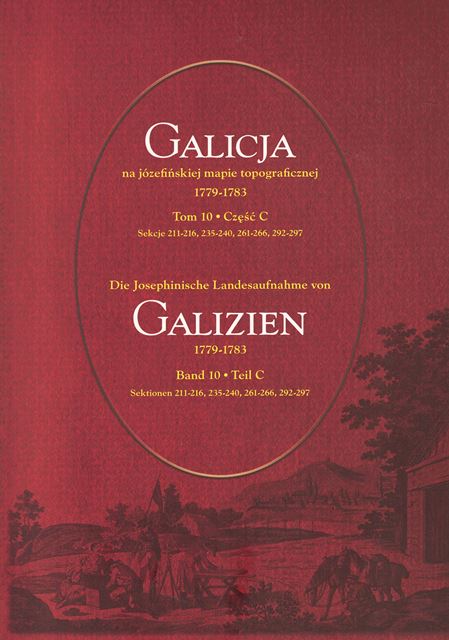 Dwa dokumenty towarzyszące - objaśnienia map: Galicja na józefińskiej mapie topograficznej 1779-1783. Tom 10, Część A, Sekcje 211-216, 235-240, 261-266, 292-297. Galicja na józefińskiej mapie topograficznej 1779-1783. Tom 10, Część C, Sekcje 211-216, 235-240, 261-266, 292-297 / kierownictwo projektu Andrzej Janeczek ; wydał Andrzej Janeczek przy współpracy Bogusława Dybasia i Łukasza Walczego ; przekład opisów na język ukraiński Andrij Stasiuk ; Polska Akademia Nauk. Instytut Archeologii i Etnologii ; Stacja Naukowa w Wiedniu ; Austriackie Archiwum Państwowe.