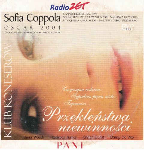Przekleństwa niewinności / reżyseria, scenariusz Sofia Coppola. - Warszawa : Best Film CO, 2003. - 1 dysk optyczny (DVD) (97 min) : dźwiękowy, kolorowy ; 12 cm.