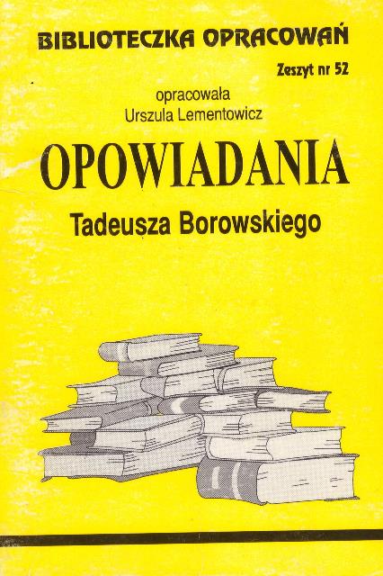 1. Życie i twórczość Tadeusza Borowskiego 2. Geneza opowiadań 3. "Pożegnanie z Marią" a) Streszczenie ; b) Obraz okupowanej Warszawy ; c) Postawy ludzi 4. "U nas, w Auschwitzu" a) Streszczenie ; b) Życie w obozie śmierci ; c) Człowiek zlagrowany 5. "Ludzie, którzy szli" a) Streszczenie ; b) Organizacja pracy na Harmenzach ; c) Warunki obozowej egzystencji 6. "Proszę państwa do gazu" a) Streszczenie ; b) Rozładowywanie transportów ; c) Reakcje ludzi 7. Narracja 8. Znaczenie prozy Borowskiego