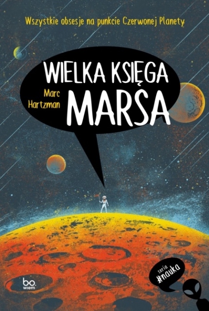 Dlaczego Mars tak przyciąga i pasjonuje? Bogato ilustrowana, zajmująca i bardzo zabawna Wielka księga Marsa ukazuje fenomen naszej fascynacji Czerwoną Planetą i jej miejsce w popkulturze. Znajdziecie tu hipotezy na temat życia na Marsie, wywiady z naukowcami i archiwalne zdjęcia. Marsem interesowali się już starożytni Egipcjanie, ale prawdziwa marsjańska obsesja pojawiła się w XIX wieku. Na jego powierzchni zaobserwowano wtedy „kanały”, które sugerowały obecność życia. Naukowcy i przedsiębiorcy prześcigali się w pomysłach, jak skontaktować się z Marsjanami. Czerwona Planeta stała się ikoną kultury popularnej, bohaterką powieści i filmów, od kreskówek Looney Tunes po Kroniki marsjańskie i Marsjanina. Nieustanne pragnienie eksploracji Marsa zaowocowało wysłaniem przez NASA łazika Perseverance w 2020 roku i dalekosiężnymi planami kolonizacji tej planety, które snuje między innymi Elon Musk. Ludzie obserwują Marsa od wieków, ale czy kiedykolwiek Marsjanie spoglądali w stronę Ziemi? Być może pewnego dnia uda nam się odpowiedzieć na to pytanie. Czy wiesz, że… niektórzy naukowcy sądzili, że Marsjanie mają skrzela, żółte twarze oraz czarne szczęki i są dużo mądrzejsi od ludzi? zanim lądownik Viking znalazł się na powierzchni Czerwonej Planety, został poddany sterylizacji, aby nie zaszkodzić marsjańskim stworzeniom? do budowy domów przyszłych kolonizatorów być może posłuży lód, który stanie się również barierą przed promieniowaniem? [Bo.wiem, 2022]