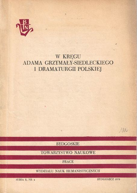Adam Grzymała-Siedlecki ; Komedie i powieści Adama Grzymały-Siedleckiego ; Adam Grzymała-Siedlecki jako krytyk i recenzent beletrystyki historycznej ; Listy do Adama Grzymały-Siedleckiego w zbiorach Biblioteki Miejskiej w Bydgoszczy ; Zarys problematyki utworów scenicznych Stefana Żeromskiego z lat 1918-1925 ; Przysłowia i zwroty przysłowiowe w twórczości Aleksandra Fredry ; Kaszubsko-pomorska dramaturgia w dwudziestoleciu międzywojennym.