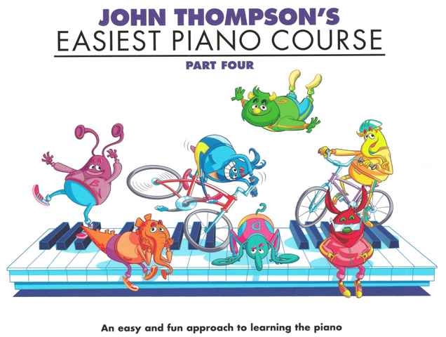 Pozycja z serii "John Thompson's Easiest Piano Course" to wspaniała szkoła gry na fortepianie, która ma na celu przekazanie niezbędnych informacji w możliwie najprostszy sposób. Dodatkowo książka zawiera zabawne ilustracje rodziny śmiesznych ludków, które towarzyszą dziecku na każdym kroku. Prezentowana część 4 skupia się przede wszystkim na rozwijaniu sprawności i biegłości w stosowaniu wiedzy zdobytej w poprzednich częściach. [https://www.alenuty.pl/pl/p/John-Thompsons-Easiest-Piano-Course-4-szkola-gry-na-pianinie-dla-dzieci/3928, dostęp 26.10.2020]