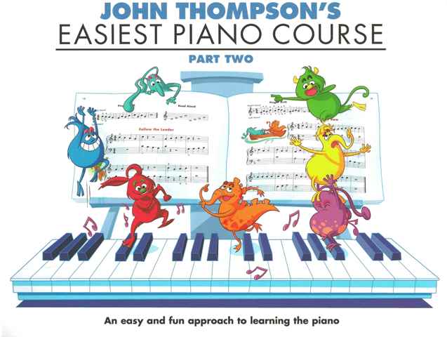 Pozycja z serii "John Thompson's Easiest Piano Course" to wspaniała szkoła gry na fortepianie, która ma na celu przekazanie niezbędnych informacji w możliwie najprostszy sposób. Dodatkowo książka zawiera zabawne ilustracje rodziny śmiesznych ludków, które towarzyszą dziecku na każdym kroku. Prezentowana część 2 wprowadza nowe zagadnienia, zawiera też liczne ćwiczenia umożliwiające doskonalenie zdobywanych umiejętności. [https://www.alenuty.pl/pl/p/John-Thompsons-Easiest-Piano-Course-2-szkola-gry-na-pianinie-dla-dzieci/3925, dostęp 26.10.2020]