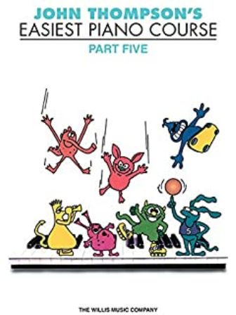 Pozycja z serii "John Thompson's Easiest Piano Course" to wspaniała szkoła gry na fortepianie, która ma na celu przekazanie niezbędnych informacji w możliwie najprostszy sposób. Dodatkowo książka zawiera zabawne ilustracje rodziny śmiesznych ludków, które towarzyszą dziecku na każdym kroku. Prezentowana część 5 skupia się przede wszystkim na rozwijaniu sprawności i biegłości w stosowaniu wiedzy zdobytej w poprzednich częściach. [https://www.alenuty.pl/pl/p/John-Thompsons-Easiest-Piano-Course-5-szkola-gry-na-pianinie-dla-dzieci/7271, dostęp 27.10.2020]