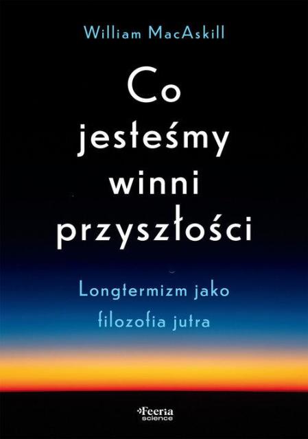 Spisane dzieje ludzkości sięgają zaledwie pięciu tysięcy lat wstecz, a historia tego, co dopiero przed nami, może objąć jeszcze całe milenia… albo zakończyć się jutro. Od wyborów dokonanych przez nas zależy, czy nasze wnuki będą żyć w szczęściu i dobrobycie, a zasoby naszej planety nie wyczerpią się u kresu ich życia. William MacAskill, oksfordzki filozof, którego myśl zawarta w niniejszej książce jest inspiracją dla najbardziej wpływowych osób na świecie, zapoznaje czytelników z longtermizmem - koncepcją, zgodnie z którą priorytetem moralnym naszych czasów powinno być działanie na rzecz jak najlepszej przyszłości ludzi. Jednak jeśli chcemy, aby nasza cywilizacja przetrwała, nie wystarczy, że będziemy pracować nad cofnięciem zmian klimatycznych czy powstrzymaniem kolejnej pandemii. Wyzwania, jakie stoją przed nami, to także przygotowanie przyszłych pokoleń do życia na planecie, na której będzie królować inteligencja sztuczna, a nie biologiczna, koroną stworzenia zaś będą byty cyfrowe, a nie ludzie. Musimy mieć pewność, że nasza cywilizacja podniesie się po każdym upadku i zadbać o jej technologiczny i moralny rozwój, a w tym celu być gotowi na każde poświęcenie.