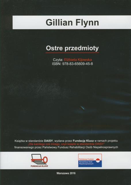 Ostre przedmioty [Dokument dźwiękowy] / Gillian Flynn. - Warszawa : Fundacja Klucz, 2016. - 1 płyta CD (11 godz. 17 min) : digital, stereo ; 12 cm.