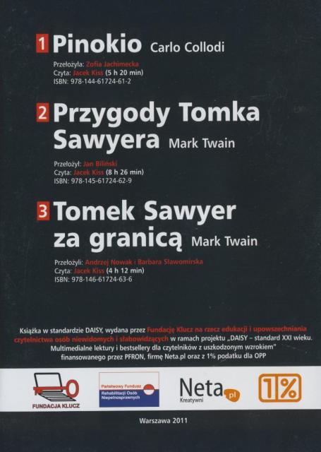 Książki nagrane przez Fundację Klucz w ramach projektu "Wyrównywanie szans w edukacji dzieci i młodzieży niepełnosprawnej wzrokowo".