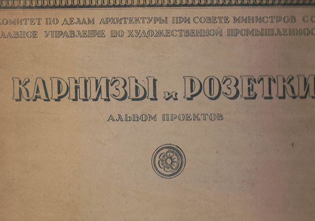 Karpizy i rozetki : al'bom proektov / [avtor al'boma I. Z. Vajnšteji] ; Komitet Po Delam Arhitektury Pri Sovete Ministrov SSSR Glavnoe Upravlenie Po Hudožestvennoj Promyšlennosti. - Moskva : Gosudarstvennoe Arhitekturnoe Izdatel'stvo, 1948. - Teka ([25] stron tablic, [10] kart tablic, [3] karty tablic złożone, [6] stron tablic złożonych) ; 29x41 cm + Dodatek drukowany: [8] stron.