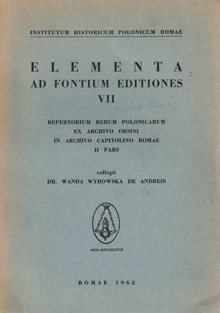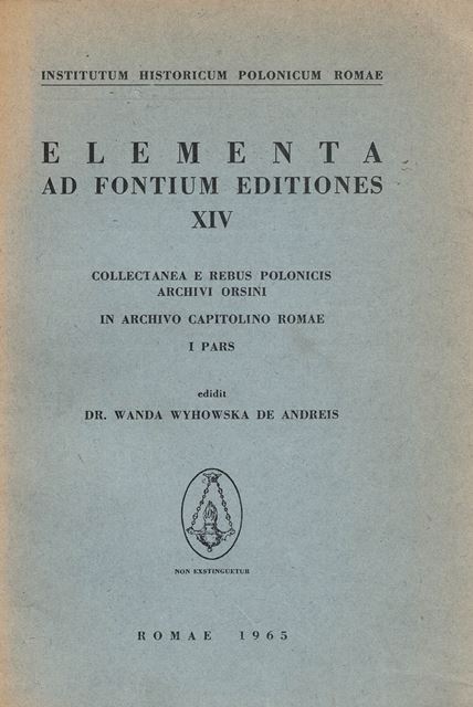 I. Iannis Pauli Campani S.I. Relatio de itinere Moscovitico / ed. A. M. Ammann. Epistola Ioannis III Regis Poloniae ad Christinam Reginam Sueciae / ed. V. Meysztowicz. Un presunto proclama di Taddeo Kościuszko / ed. S. Piekut. II. La fondazione dell'Universita di Leopolo alla luce dei documenti dell'Archivio Orsini di Roma / Wanda Wyhowska de Andreis. Szkoły Pijarskie Komisji Edukacji Narodowej w Wieluniu (1774-1793) / Władysław Kujawski. Adamo Mickiewicz e i suoi legami con gli irredentisti italiani / Stanisław Piekut. L'attentat de Berezowski le 6 juin 1867 ; Vive la Pologne. Monsieur! / Stanisław Bóbr-Tylingo.