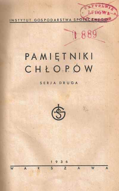 Pamiętniki chłopów. Serja 2 / Instytut Gospodarstwa Społecznego. - Warszawa : Instytut Gospodarstwa Społecznego, 1936 (Warszawa : Drukarnia Gospodarcza). - XVI, 895, [7] stron ; 25 cm.