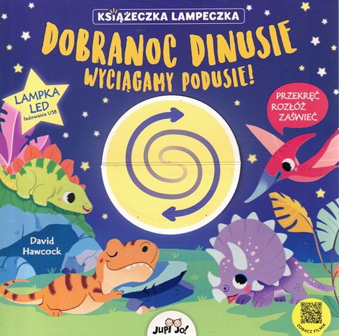 Niesamowita książka na dobranoc, która zmienia się w lampkę LED ładowaną przez USB-C.Książka lampka to innowacyjny projekt opracowany przez Davida Hawcocka, mistrza inżynierii papierniczej. Wystarczy przekręcić i pociągnąć okrągły element na okładce, a sypialnia maluszka natychmiast się rozświetli! W książce znajduje się osiem słodkich rymowanek o dinozaurach, które pomogą dzieciom przygotować się do snu, a delikatne światło lampki będzie towarzyszyło im podczas zasypiania. Fluorescencyjne detale na okładce pozwolą zobaczyć książkę nawet w ciemności! Przeczytaj książeczkę, a potem rozłóż i włącz lampeczkę! Zobacz tę niesamowitą książkę! [www.azymut.pl]