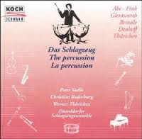 Das Schlagzeug [Dokument dźwiękowy] / Werke von Fink, Brindle, Glentworth, Hertel, Thärichen, Abe, Denhoff. - [S.I.] : Koch, 1992. - 1 płyta CD (54 min 25 s) : digital, stereo. ; 12 cm + Dod. druk.