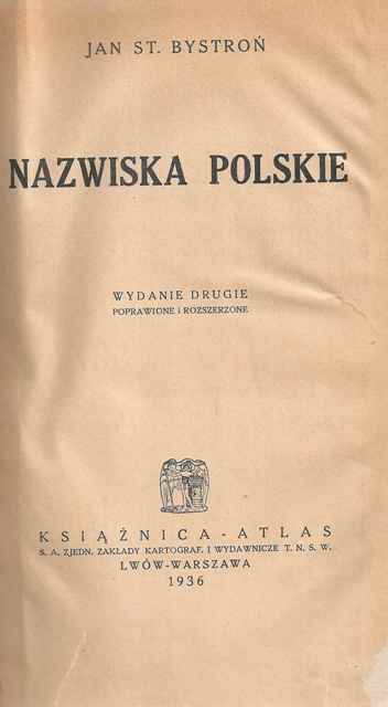 Nazwiska polskie / Jan St. Bystroń. - Wydanie 2. poprawione i rozszerzone. - Lwów ; Warszawa : Książnica-Atlas, 1936. - 334 strony ; 23 cm.