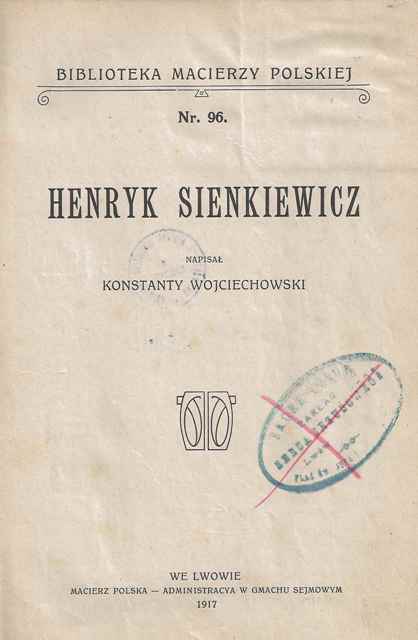 Henryk Sienkiewicz / Konstanty Wojciechowski. - Lwów : Macierz Polska, 1917. - 127, [1] strona ; 19 cm.