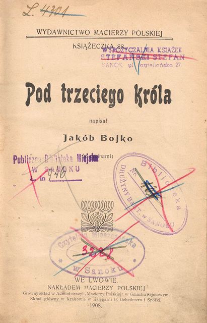 Pod trzeciego króla / napisał Jakób Bojko. - Lwów : nakładem "Macierzy Polskiej", 1908 (Lwów : Druk. Udziałowa). - 94 strony : ilustracje ; 1908.